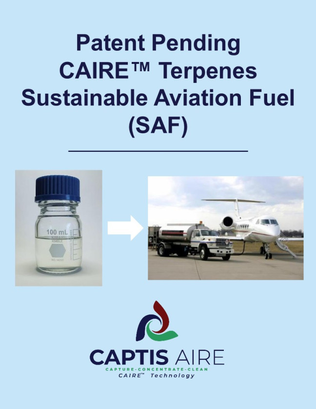 Terpenes captured from green pine wood can be used to provide patent pending CAIRE™ Terpenes Sustainable Aviation Fuel (SAF)